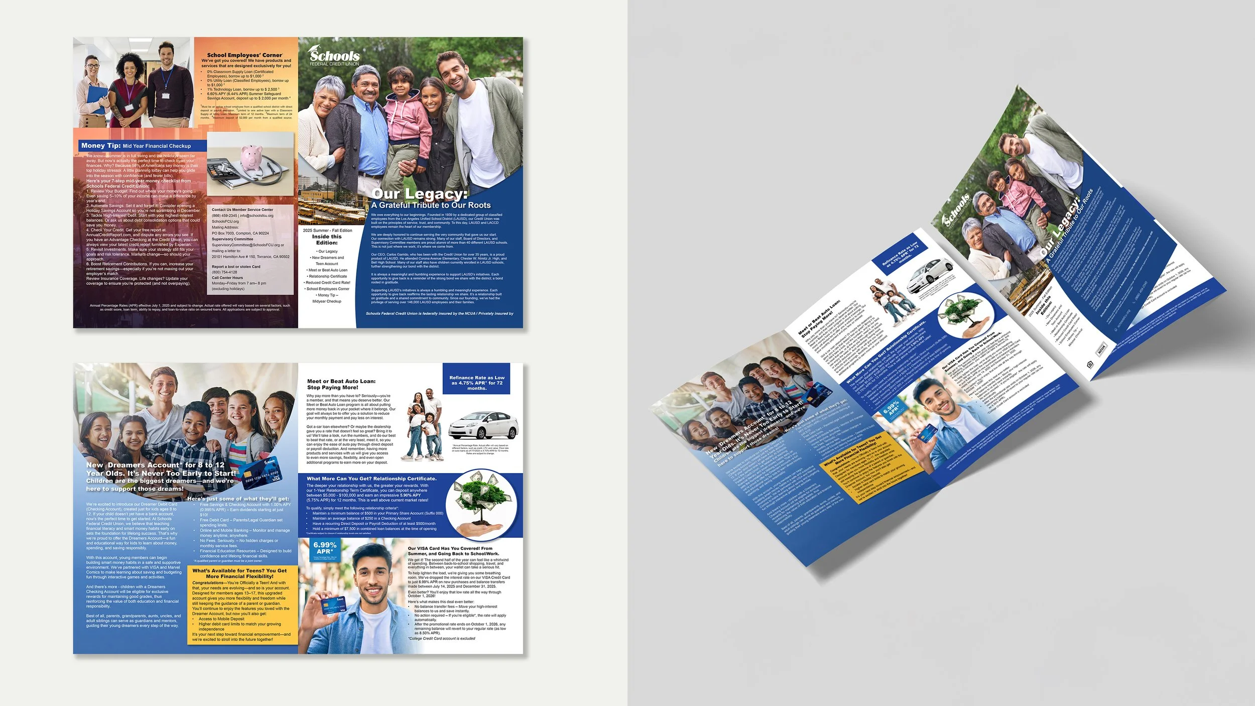 I was tasked with the creation of a range of marketing materials for Schools Credit Union, including promotional posters, credit card designs, and newsletters.